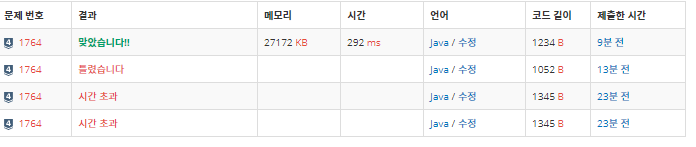 ๋ค๋ฅธ ์๋ฃ๊ตฌ์กฐ๋ก ์ ๊ทผํด์ผ ํ ๊ฒ ๊ฐ์ง๋ง ์๋ฃ๊ตฌ์กฐ๊ฐ ์์ง ๋ถ์กฑํ์ฌ ๋ค๋ฅธ ํ์ด๋ฅผ ์ฐธ๊ณ ํ๋ค.
