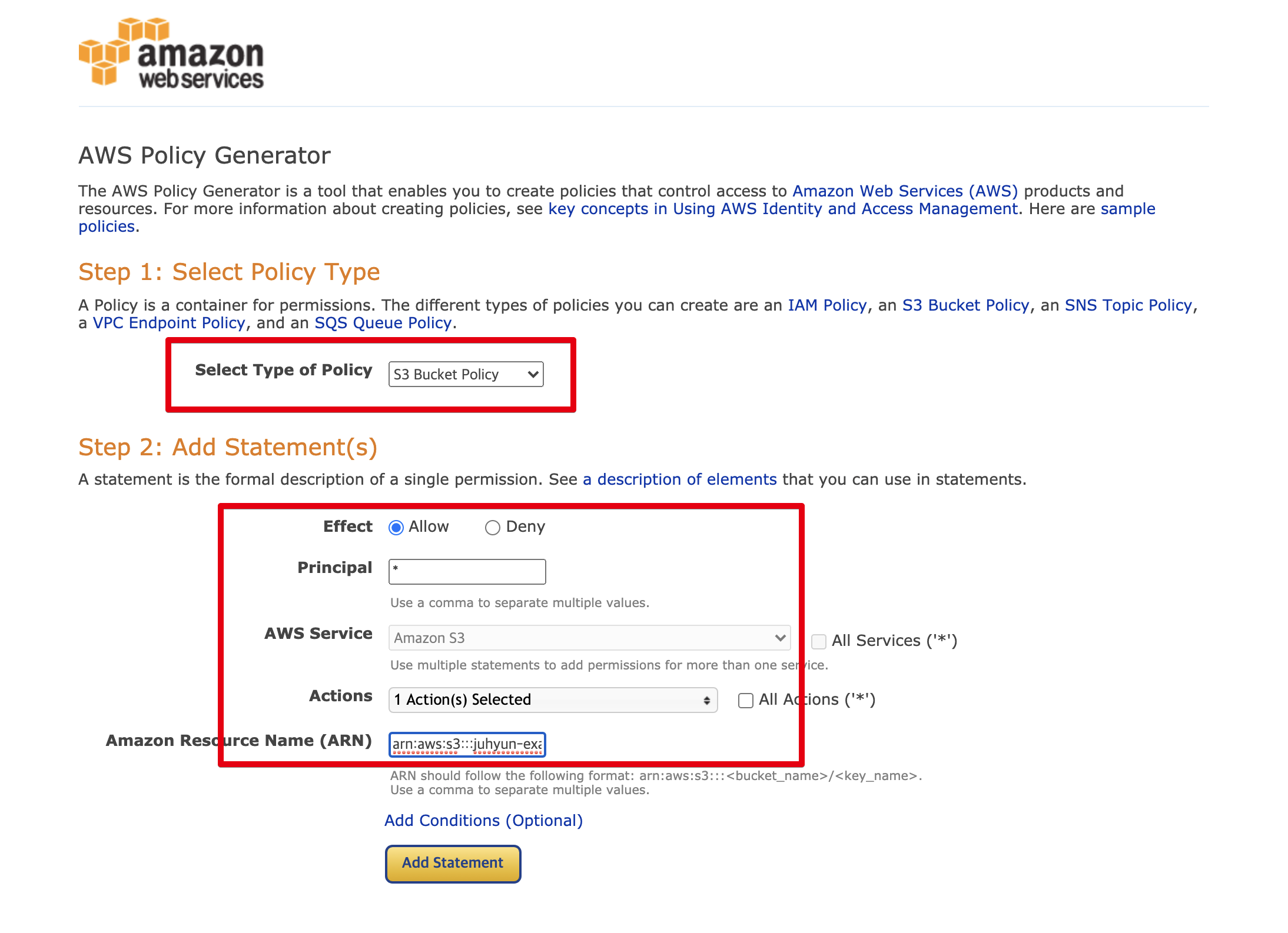 ๋ค ์์ ํ์ จ์ผ๋ฉด Add Statement ๋ฒํผ์ ํด๋ฆญํด์ฃผ์ธ์.