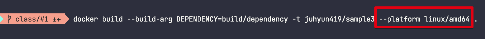 docker build --build-arg DEPENDENCY=build/dependency -t λ컀νλΈ ID/Repository --platform linux/amd64 .
