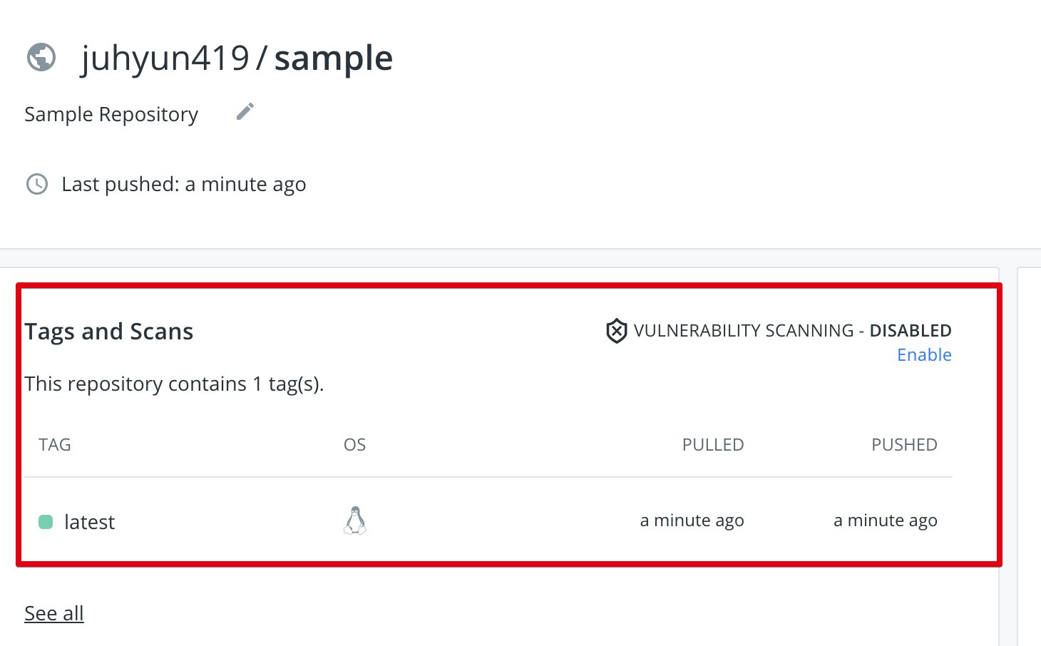 - $ sudo docker pull juhyun419/sample