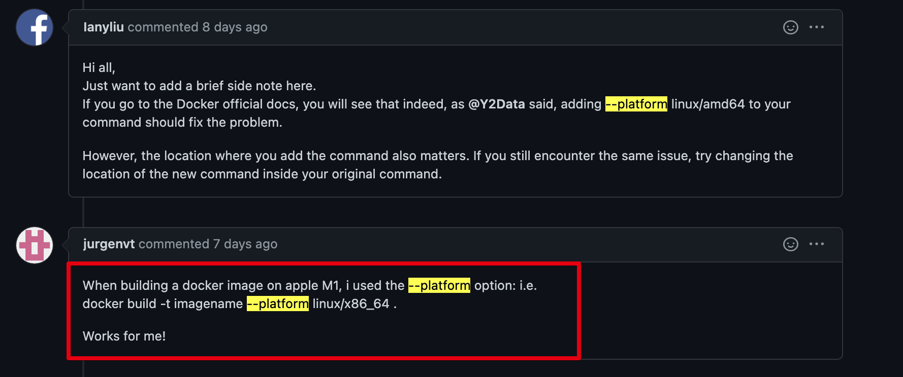 μ ν M1μ κ²½μ° λ컀 μ΄λ―Έμ§λ‘ λΉλν λ --platform μ΅μ μ μ¬μ©ν΄μΌ ν©λλ€.