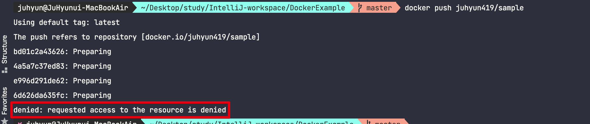 λ§μ½ μμ κ°μ΄ denied: requested access to the resource is denied λΌλ λ¬Έκ΅¬κ° λμ€λ©΄ λ‘κ·ΈμΈμ ν΄μ£Όμ΄μΌ ν©λλ€.