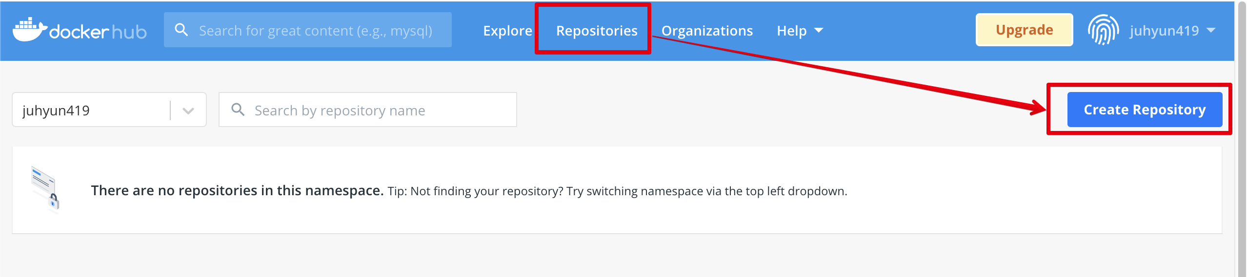 κ·Έ ν Repositories > Create Repository λ‘ λ€μ΄κ°μ λ컀 λ ν¬μ§ν 리λ₯Ό μμ±ν©λλ€.
