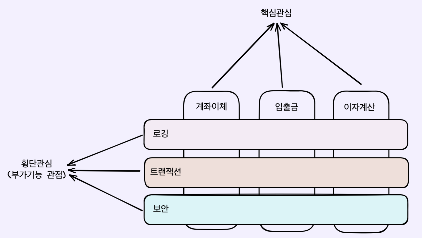 μ ꡬ쑰μμ ν΅μ¬ κΈ°λ₯λ€μ μννλλ° λ°λμ μ€ννλ 곡ν΅μ μΈ(λΆκ°μ μΈ) κΈ°λ₯λ€μ΄ λ‘κΉ , νΈλμμ , 보μ μ λλ€. μ΄λ¬ν κ²λ€μ ν‘λ¨κ΄μ¬μ΄λΌκ³ νλλ°, μ μ΄λ¬ν λΆκ° κΈ°λ₯μ λΆλ¦¬ν΄μΌ νλκ±ΈκΉμ? λΉμ°νκ²λ, μ€λ³΅μ΄ λ°μνλ€λ λ¬Έμ μ κ³Ό μ μ§λ³΄μμ μ΄λ €μμ΄ μμ΅λλ€.