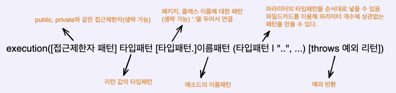 - execution(int minus(int, int)): int νμ μ λ¦¬ν΄ κ°, minusλΌλ λ©μλ, λ κ°μ int νλΌλ―Έν°λ₯Ό κ°μ§λ λ©μλ