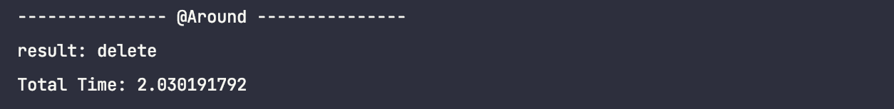 μ€ν μκ°μ νκ² λ©μλ(delete)μ μ , ν μ μ΄λ£¨μ΄μ ΈμΌ νκΈ° λλ¬Έμ @Around μ΄λ Έν μ΄μ μ ν΅ν΄ μ€μ ν©λλ€.