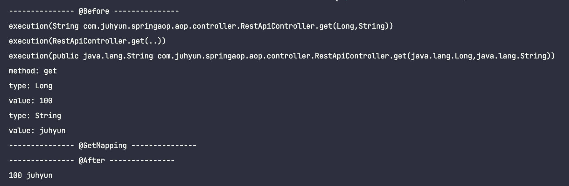 @Pointcut("execution(* com.juhyun.springaop.aop.controller.RestApiController.get(..))")