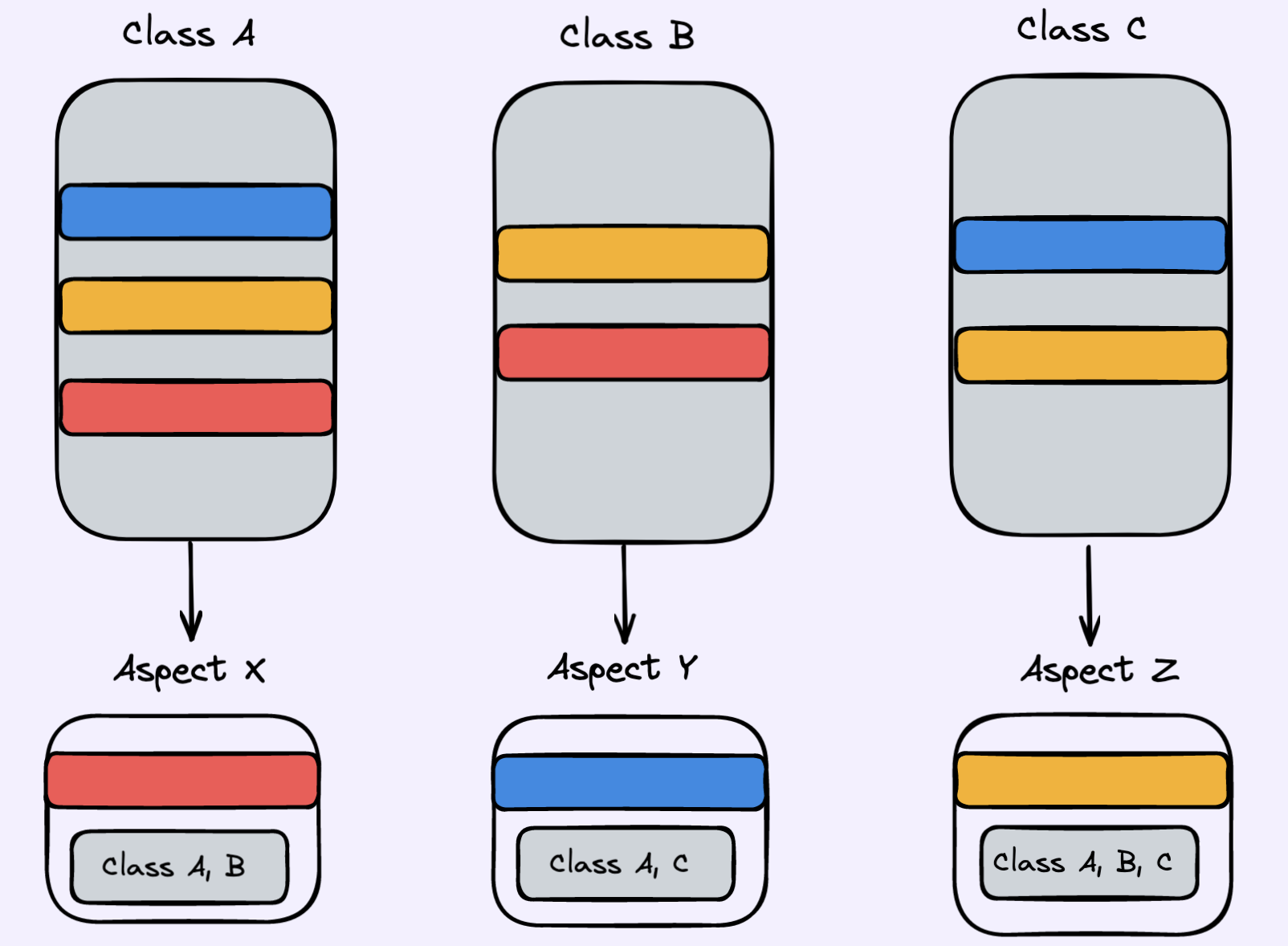 - Aspectλ μ¬λ¬ μ νκ³Ό κ°μ²΄μ κ±Έμ³μλ λμΌν κ΄μ¬μ¬(ex. νΈλμμ )μ λͺ¨λμ κ°λ₯νκ² ν©λλ€.