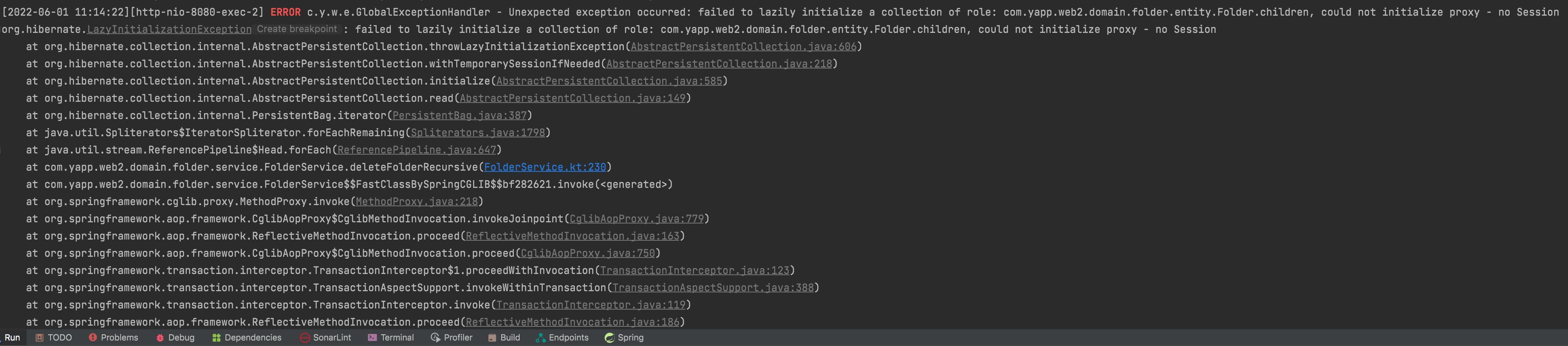 ๐ org.hibernate.LazyInitializationException: failed to lazily initialize a collection of role: ... entity.Folder.children could not initialize proxy - no Session