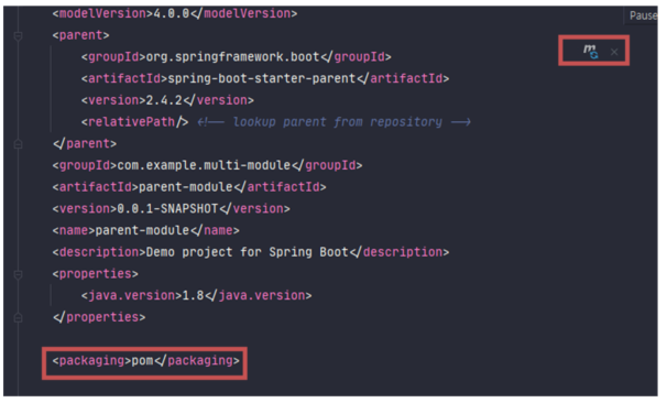 • λΆλͺ¨(parent) pomμ 보면 μλ¨μ μ μλ μλ modules νκ·Έκ° μμ±λμμ΅λλ€.